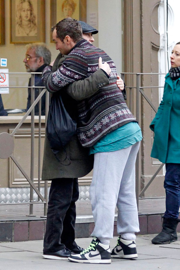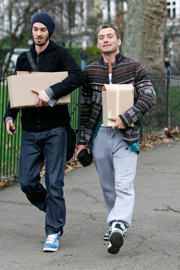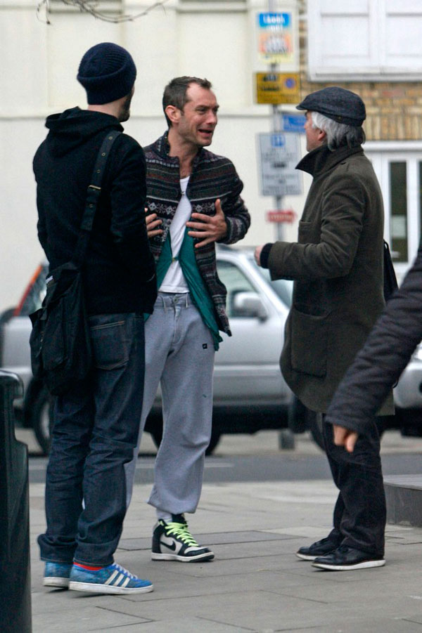 Οι παπαράτσι εντόπισαν τον Jude Law σε δρόμο του Λονδίνου να συζητά με φίλους και να κουβαλάει κάποια δέματα και φυσικά σχολιάστηκε το γεγονός ότι κυκλοφορούσε με τη φόρμα και τις πιτζάμες του...